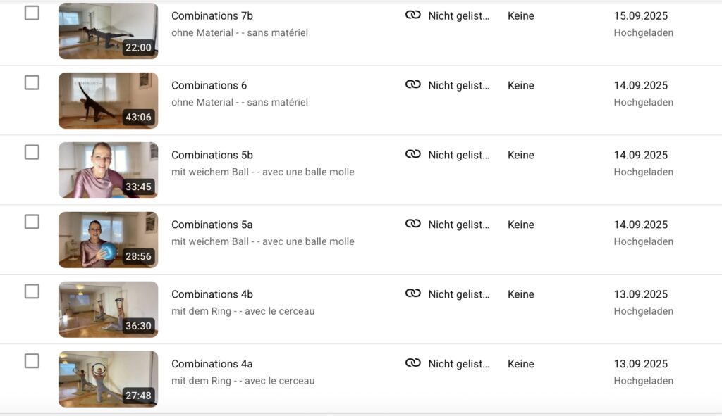 Pour les entraînements Pilates sur le tapis, nous offrons la possibilité de bouger en ligne avec YouTube: De nouvelles vidéos variées avec un temps total d’env. 12 heures sont mises à disposition tous les 3 mois. Ces entraînements conviennent à toute personne ayant obtenu une introduction à la méthode de J. Pilates et qui désire s’entraîner sans horaire fixe. Prix pour 3 mois: 240.– / en plus d’un abo studio: 75.–